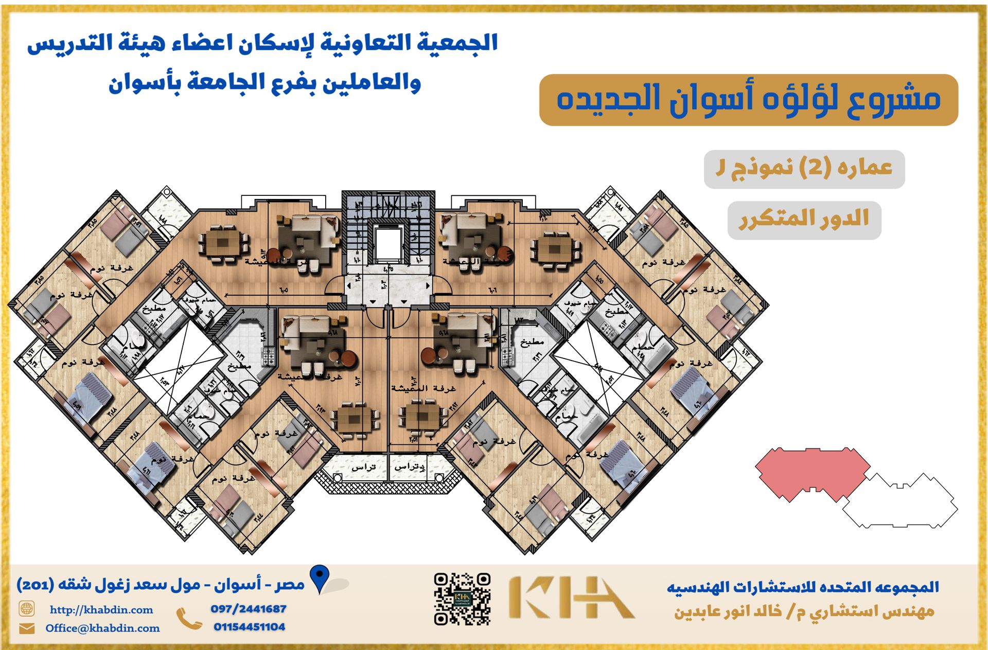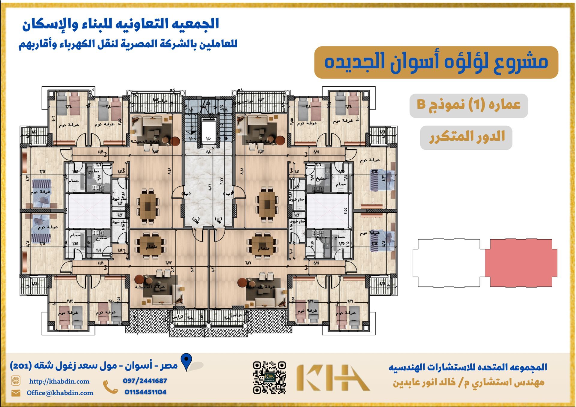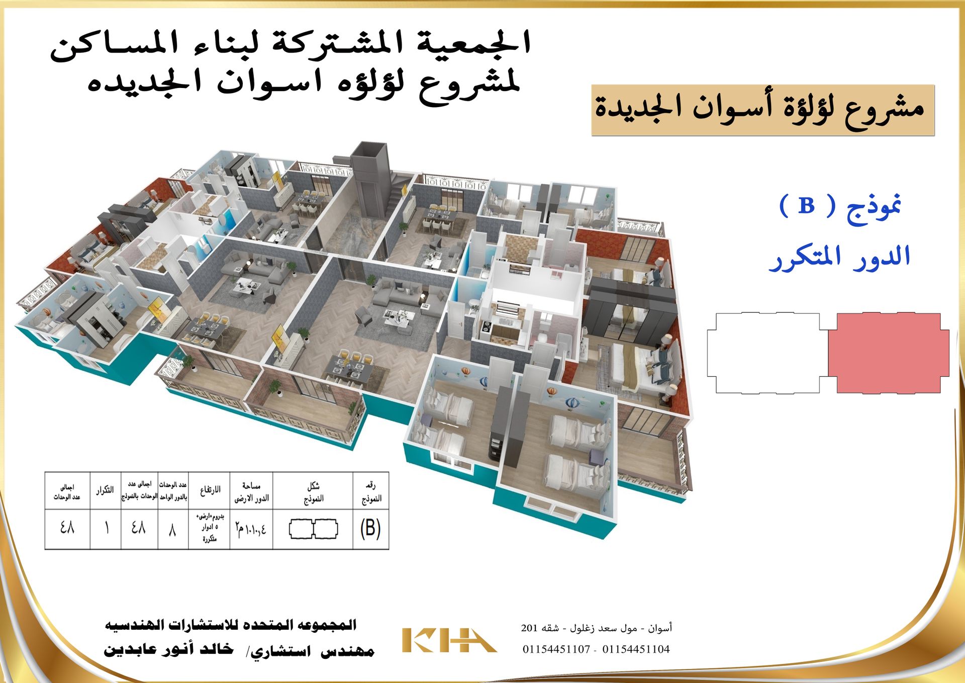 مراجعه التصميمات من خلال مكتبنا واعداد كراسة الشروط و المواصفات واشراف على التنفيذ لمشروع لؤلؤة اسوان الجديده بمدينة أسوان الجديده الخاص بالجمعيات التالية :