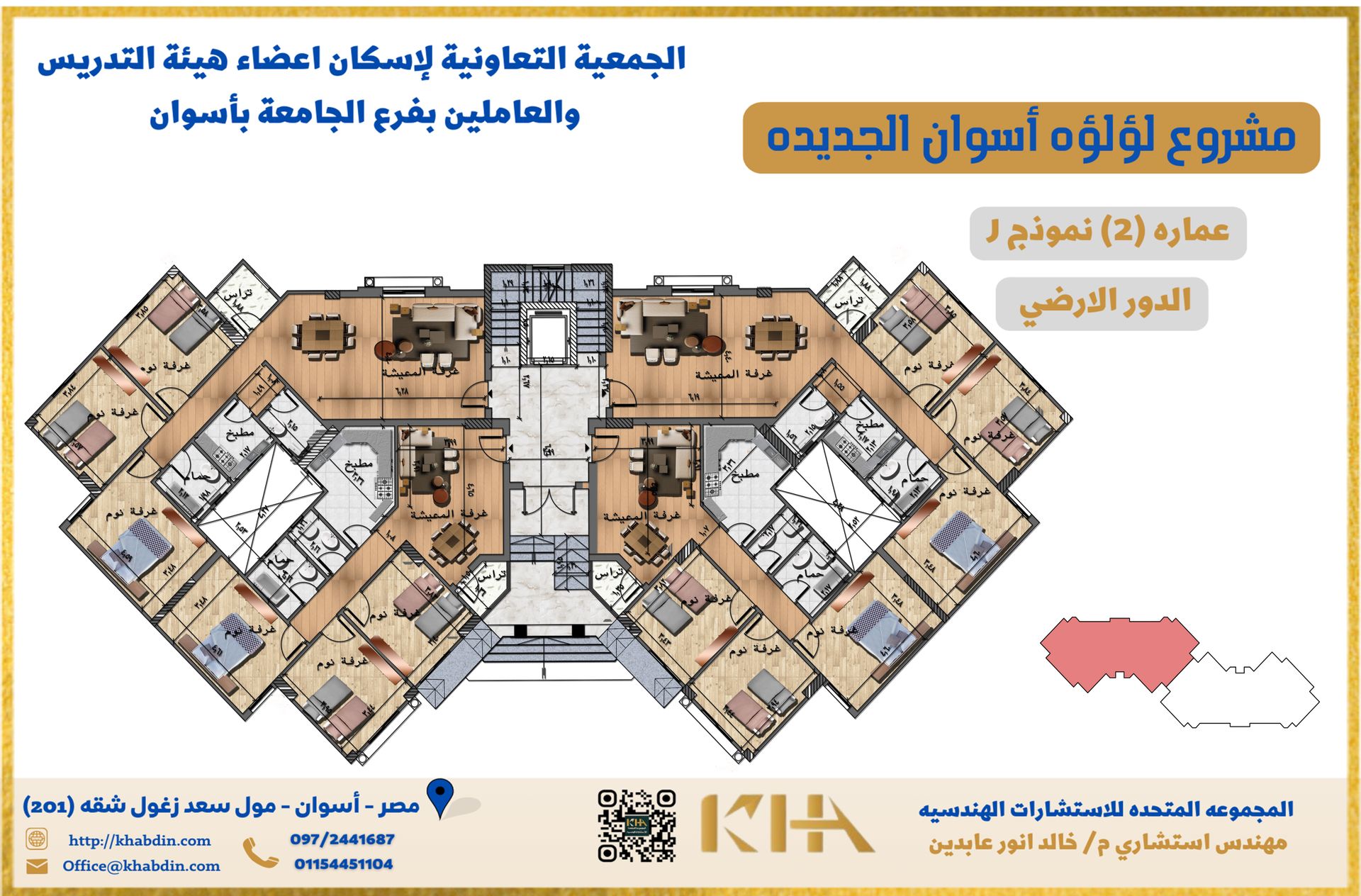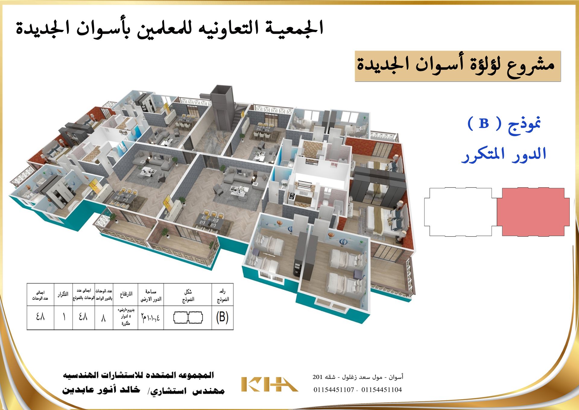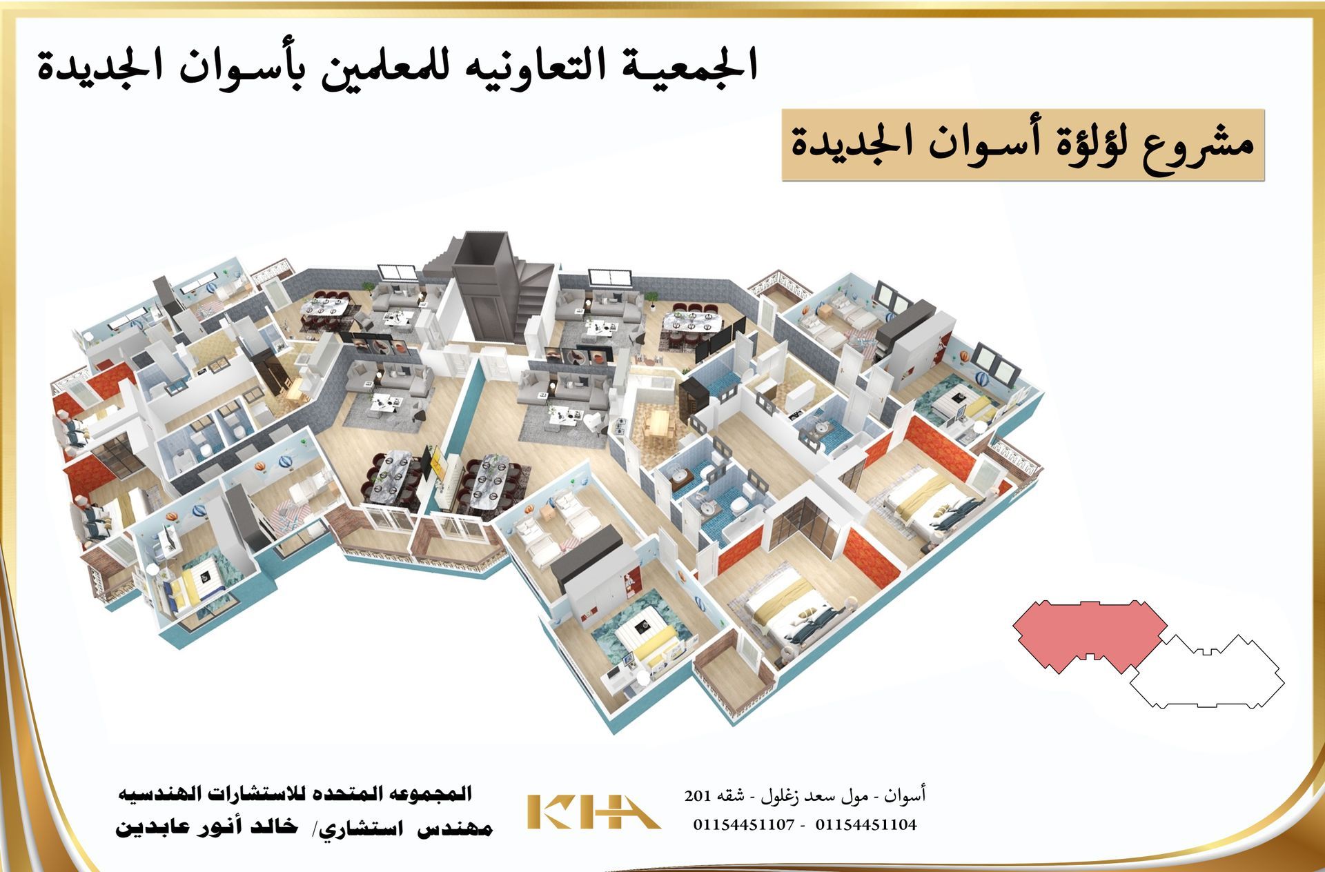 تم مراجعه التصميمات واعداد كراسة الشروط و المواصفات و اشراف على تنفيذ المشروع والذي سيتم طرح وحداته من خلال الجمعيه التعاونيه للمعلمين بأسوان الجديده بسعر التكلفه فقط وتسهيلات للدفع للمعلمين فقط .
