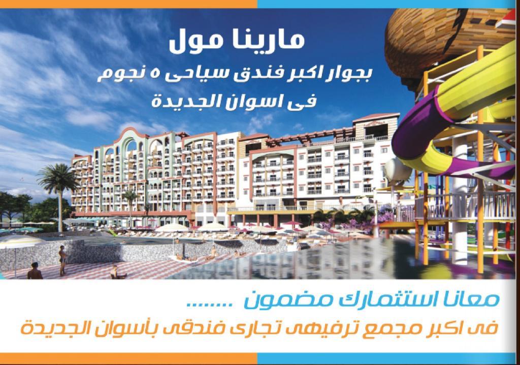 مول مارينا مشروع تجاري ضخم على مسطح 3560 متر مسطح في قلب اسوان الجديده يطل على مارينا اكوا بارك اسوان الجديده